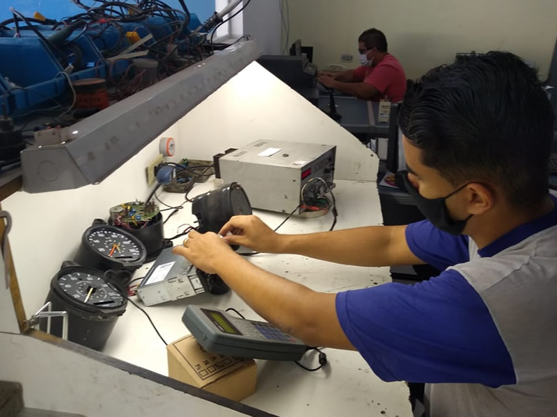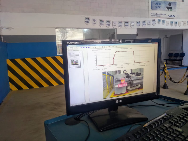 Serviço de ensaio metrológico de tacógrafos. Essa etapa é obrigatória para obtenção do certificado com validade de 2 anos.